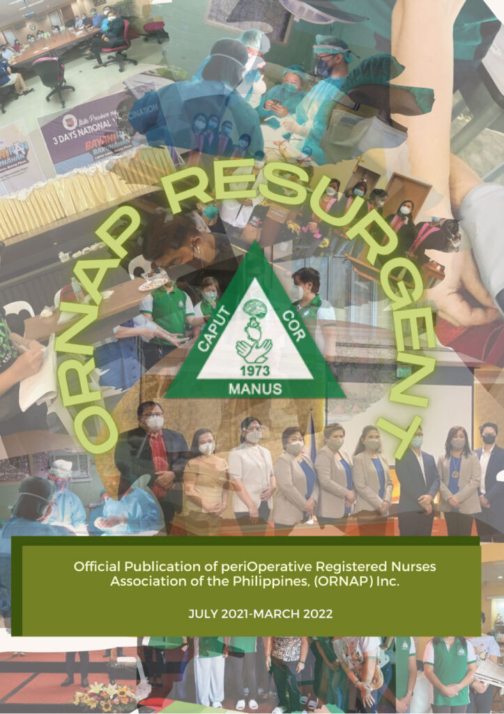 July 2021 – March 2022 Issue ORNAP Newsletter (July 2021 – March 2022) Click here to download Share FacebookTwitterPinterestWhatsApp News & Events Perioperative Nurses Week 2025 Leadership Summit 2025 Battle of the Brains 2025 Poster Making Contest 2025 Blood Donation 2025 Chapter Activities Video Making Contest 2022 1st Virtual Convention and Scientific Meeting – Negros Occidental Chapter Prevention and Control of Emerging and Re-emerging Infection in Hospital and Community Setting Chapter Conventions 2020 Issuances RECOMMENDED GUIDELINES ON PERIOPERATIVE NURSING MANAGEMENT DURING COVID- 19 PANDEMIC Cancellation of the 46th Annual Convention and Scientific Meeting